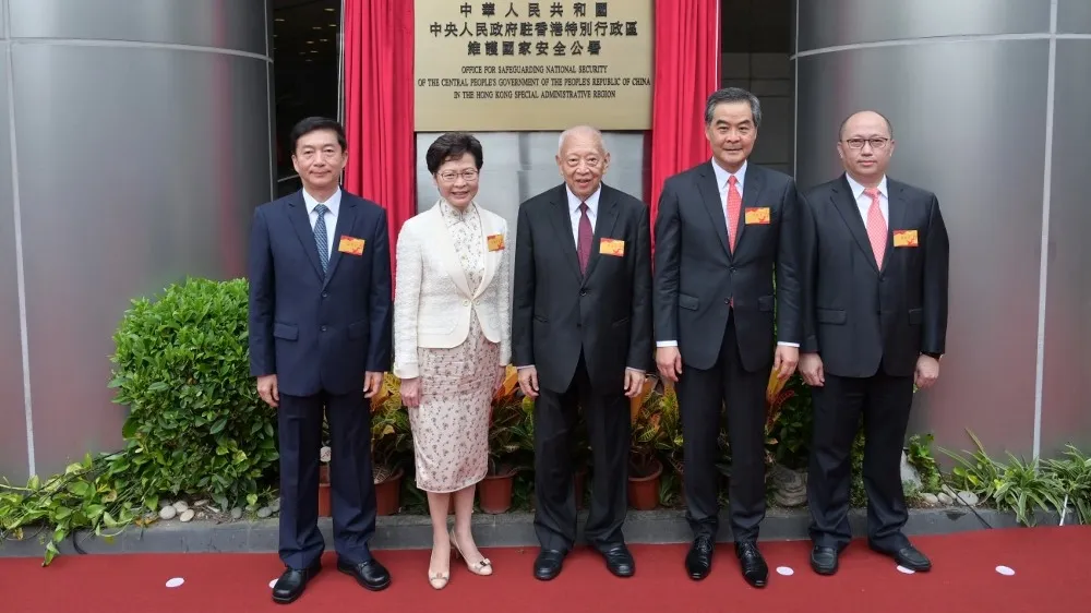 Tại lễ khánh thành có Giám đốc Văn phòng Bảo vệ An ninh Quốc gia Zheng Yanxiong, Giám đốc Văn phòng liên lạc Trung Quốc ở Hong Kong – ông Luo Huining.