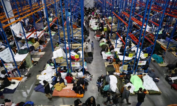 Những người di cư tập trung tại một trung tâm vận tải và hậu cần gần biên giới Belarus-Ba Lan ở vùng Grodno, Belarus, hôm 19-11. Ảnh: REUTERS