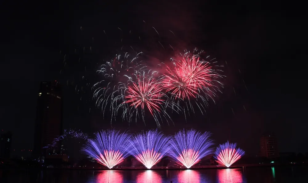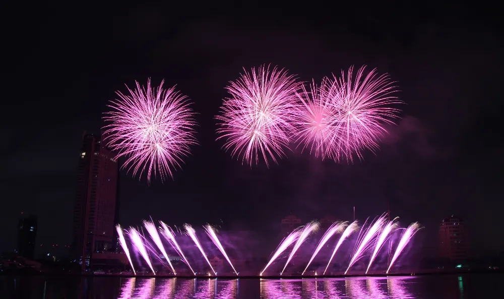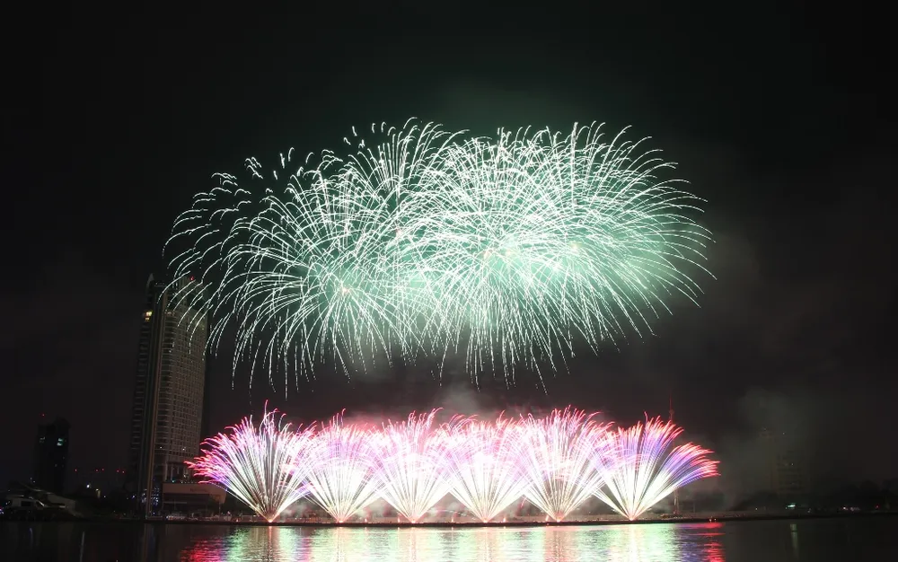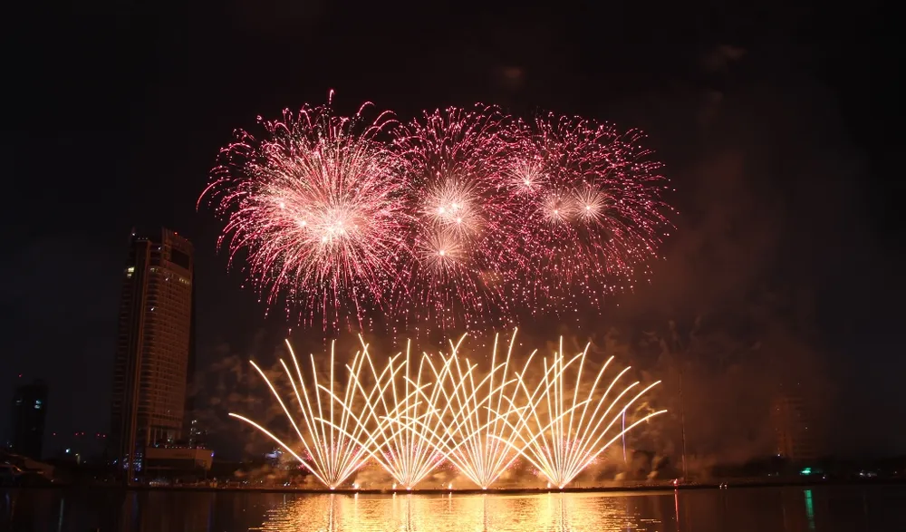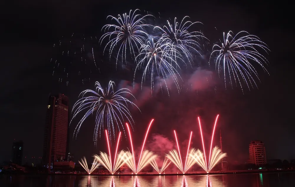 Từng bông pháo bung nở vẽ nên nhiều hình dáng trên bầu trời đêm. Ảnh: TẤN VIỆT