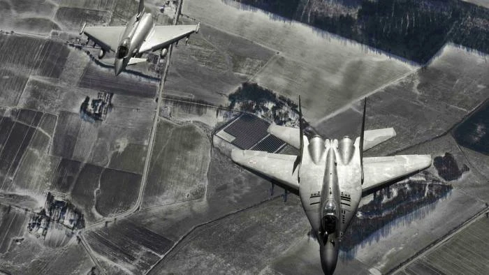 Một máy bay chiến đấu MiG-29 của Không quân Ba Lan, bên phải và một máy bay phản lực Eurofighter Typhoon của Ý trong một cuộc tuần tra chung. Ảnh: REUTERS
