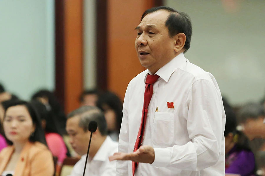 Ông Trần Quang Thắng, Viện trưởng Viện Kinh tế và Quản lý TP.HCM, phát biểu tại kỳ họp thứ 17 HĐND TP.HCM khóa IX. Ảnh: HOÀNG GIANG