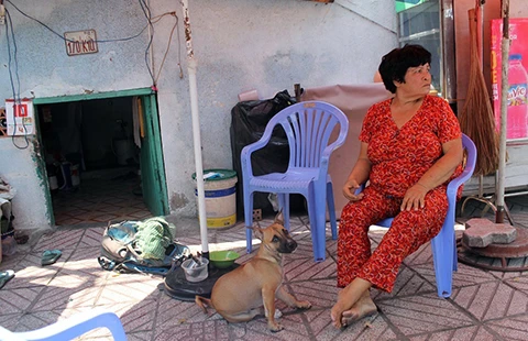 Lối ra vào nơi ở của bà Sang thấp tè chưa đến 1,5 m. Ảnh: H.LÊ
