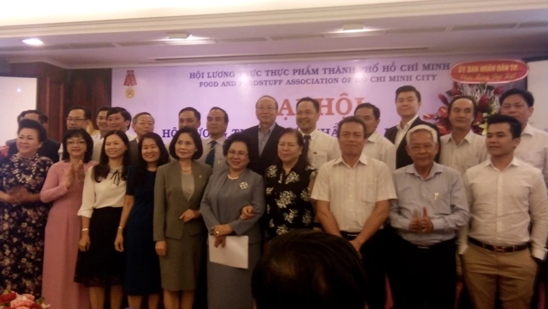 Bà Lý Kim Chi (thứ năm từ phải qua) tái đắc cử chủ tịch Hội Lương thực thực phẩm TP.HCM nhiệm kỳ 2018-2023).