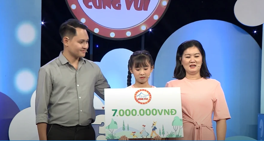 Trải qua năm câu hỏi thú vị, cả nhà bé Hồng Thu có được hai câu hỏi trùng khớp với suy nghĩ của nhau. Điều này cũng đồng nghĩa gia đình bé sẽ nhận về hai món quà của chương trình với giá trị 7 triệu đồng.