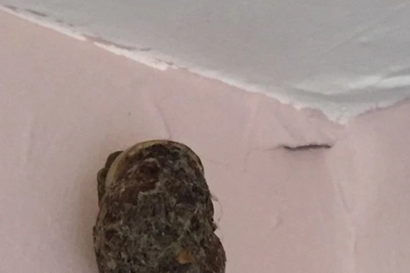 Vật lạ dính chặt vào tường. Ảnh: Mirror