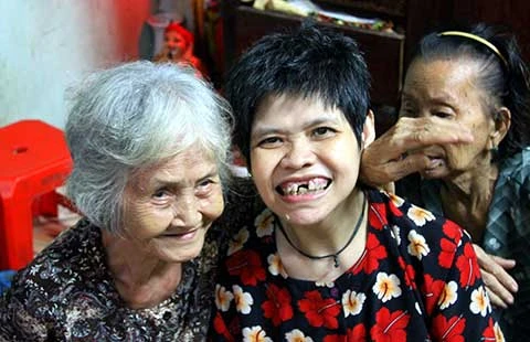 | Từ lúc tôi về đây đã thấy ba mẹ con sống với nhau như vậy. Những lúc chị Huệ bị bệnh hay phải đi cắt tóc, hai bà lão phải đẩy con ra đường bằng xe lăn rất cực. Mấy năm nay bà Gái bị mù nên thường xuyên bị lạc đường, bà Út lại cuống cuồng đi kiếm. Sống trên đời mấy chục năm trời, thiệt tôi chưa từng thấy gia đình nào gắn kết với nhau như thế. Nếu không chứng kiến sự việc, đố ai dám tin ba người họ là người dưng. Chị NGUYỄN NGỌC MAI, hàng xóm của hai bà cụ Khi hỏi ước mơ lớn nhất hiện tại là gì, hai bà già đều đồng thanh trả lời: “Mong con Huệ có nơi chốn bình yên, không bị đối xử tàn tệ”. |