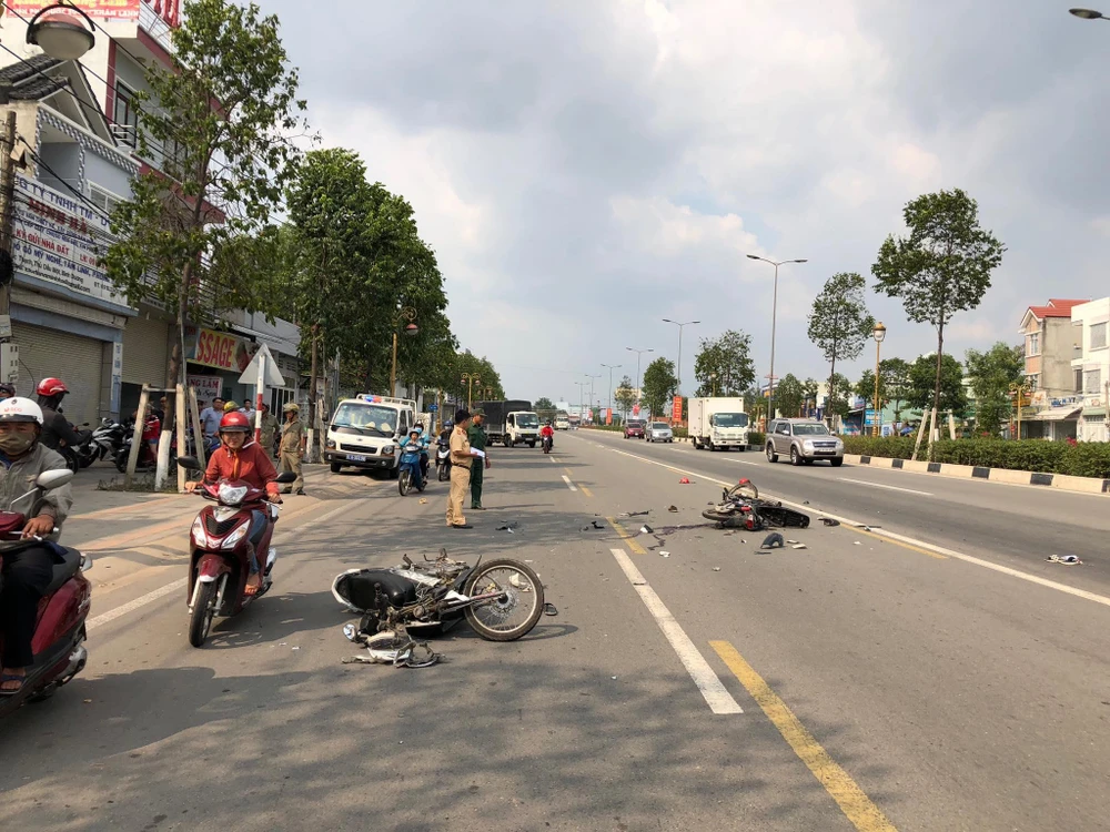 Vụ tai nạn xảy ra khoảng 15 giờ ngày 7-4 trên đường Phạm Ngọc Thạch (phường Phú Mỹ, TP. Thủ Dầu Một, tỉnh Bình Dương).