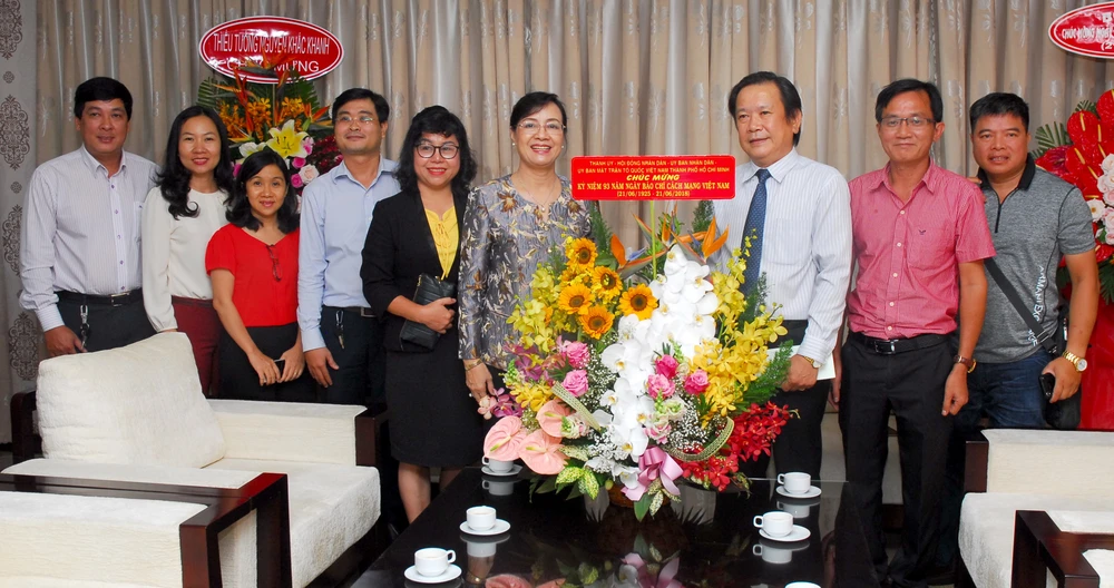 Bà Nguyễn Thị Quyết Tâm, Chủ tịch HĐND TP.HCM thăm, chúc mừng báo Pháp Luật TP.HCM nhân ngày Báo chí Cách mạng Việt Nam. ẢNH: HUỲNH TRÍ DŨNG