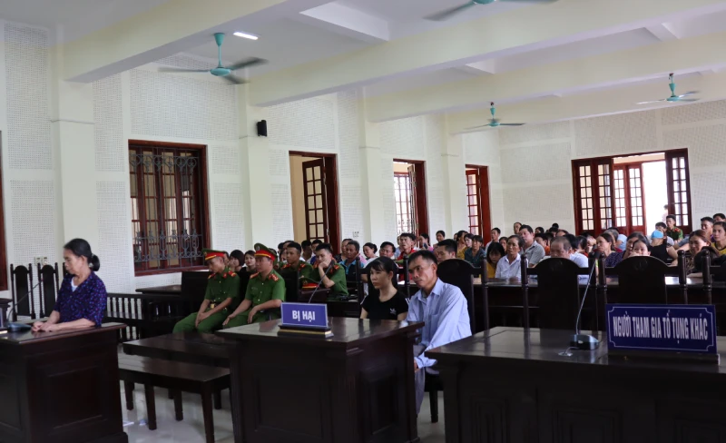 Nhiều người thân và người dân đến tham dự phiên tòa xét xử bị cáo Hường. Ảnh: Đ.LAM