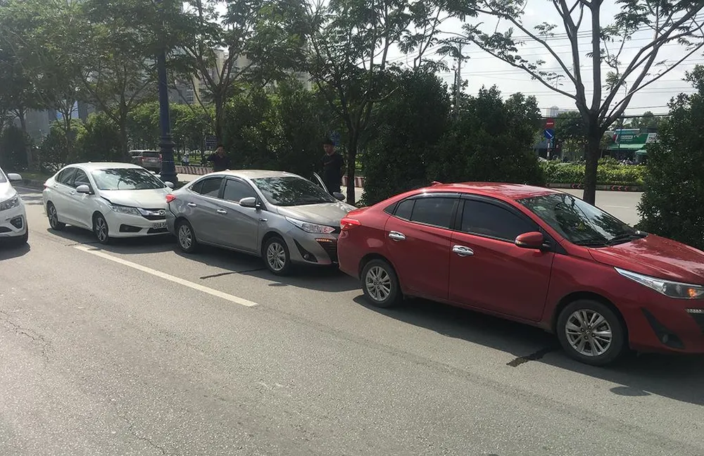 Cú tông dồn khiến ba xe hư hỏng phần đầu hoặc đuôi, nằm chắn một làn đường.