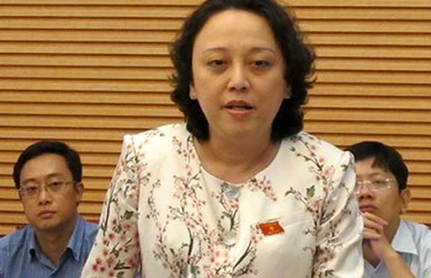 Bà Phong Lan phát biểu tại diễn đàn Quốc hội về đấu thầu thuốc với tư cách là đại biểu Quốc hội, đại diện cho cử tri. Ảnh: HA