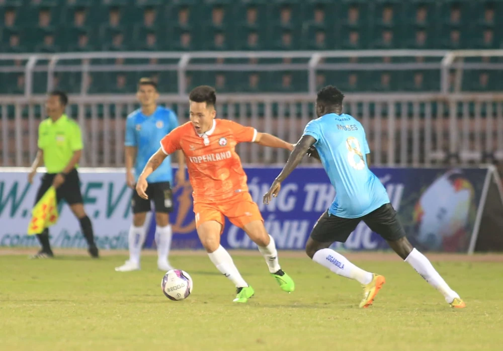 Một trận đấu mà trọng tài Ngô Duy Lân đã ba lần chỉ tay vào chấm 11m. Tân binh V- League- Topenland Bình Định (T.Bình Định) suýt đánh bại CLB Hà Nội.