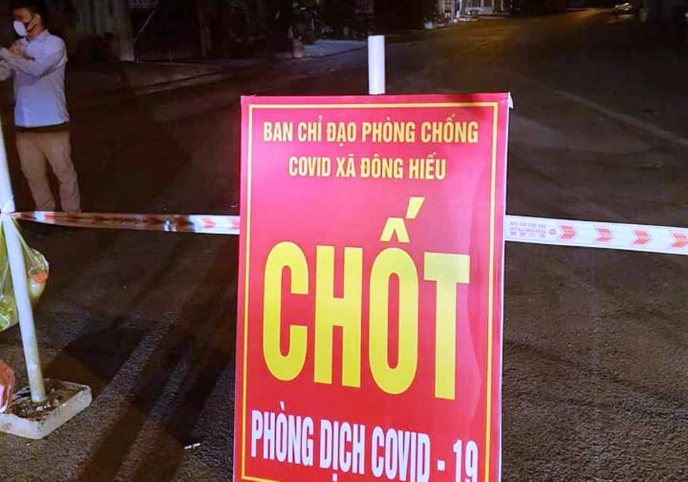 Lập chốt phòng dịch COVID-19 tại xã Đông Hiếu (thị xã Thái Hòa, Nghệ An).