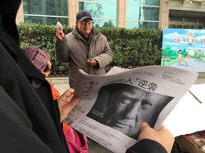 Trang bìa của một tờ báo tại Bắc Kinh với hình ảnh ông Trump. Ảnh: APP