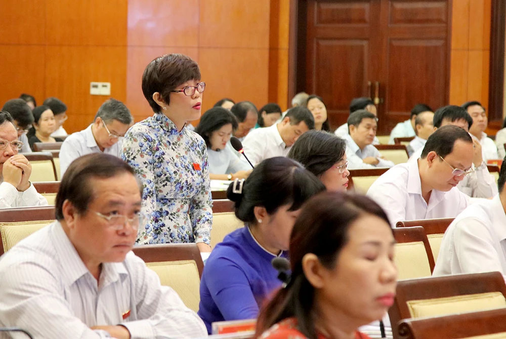 ĐB Nguyễn Thị Tố Trâm đặt vấn đề về thu phí vỉa hè. Ảnh: HTD