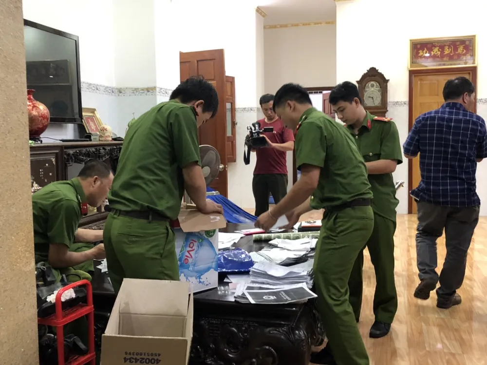 Đến hơn 22 giờ cùng ngày việc khám xét vẫn chưa kết thúc. Cơ quan CSĐT đã thu giữ nhiều tài liệu trong nhà ông Thiện.