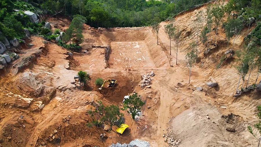 Theo đó, qua công tác nắm tình hình, ngày 11-6 công an thị xã Phú Mỹ phối hợp với phòng TN&MT phát hiện hoạt động đào bới, san gạt, kè đá tạo hồ, kè đá ngăn suối, hoạt động chẻ đá tại tiểu khu rừng Tân Phước- núi Thị Vải nên lập hồ sơ và tiến hành các hoạt động điều tra theo quy định của pháp luật.