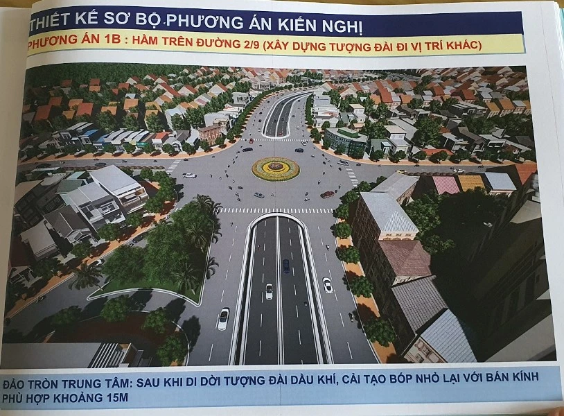Theo đó, đơn vị tư vấn kiến nghị lựa chọn phương án di dời tượng đài và làm hầm chui tại nút giao này, hướng hầm chui từ đường 2 Tháng 9 sang Thống Nhất (nối dài). Đây là phương án ít tốn kém so với các phương án khác, chi phí khoảng 499 tỉ đồng, trong đó 30 tỉ đồng là kinh phí di dời, lắp đặt, cải tạo lại vị trí đặt tượng đài Dầu khí mới.