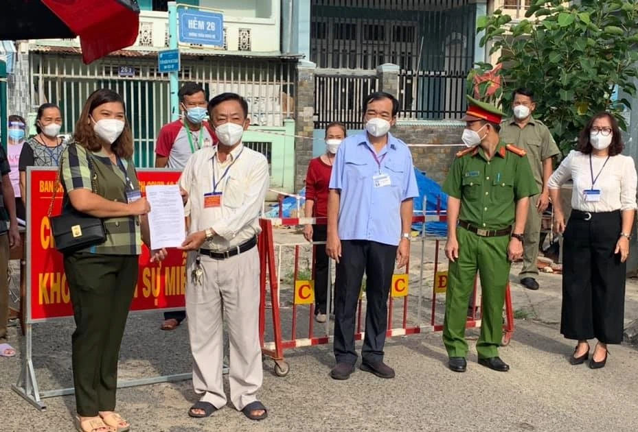 Dỡ bỏ phong tỏa 10 tổ dân cư , KP3, phường Thắng Nhì, Vũng Tàu sáng 18-9. Đây là khu phong tỏa lớn nhất từ khi có dịch đến nay ở Vũng Tàu. Ảnh:HT.
