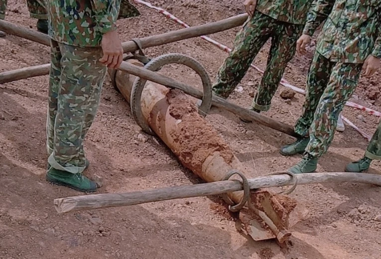 Ngày 7-5, lực lượng Công binh, Bộ Chỉ huy quân sự tỉnh Bà Rịa-Vũng Tàu tháo gỡ quả bom dài 1,6m được phát hiện tại mỏ khai thác khoáng sản.