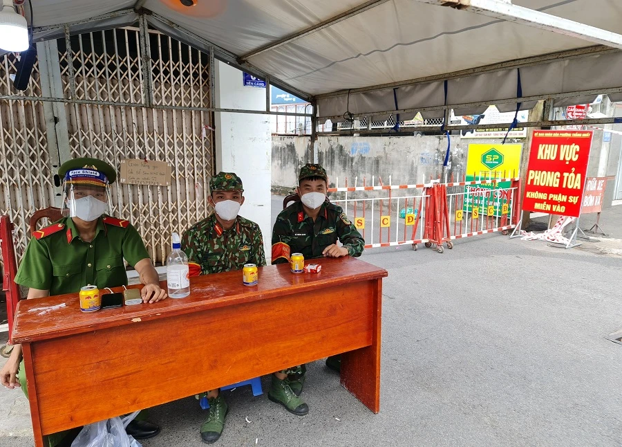 BR-VT tăng cường lực lượng để kiểm soát chặt việc giãn cách xã hội, nhất là các khu cách ly, phong tỏa-(Ảnh minh họa tại chốt khu vực phong tỏa phường Thắng Nhất, Vũng Tàu):PTN