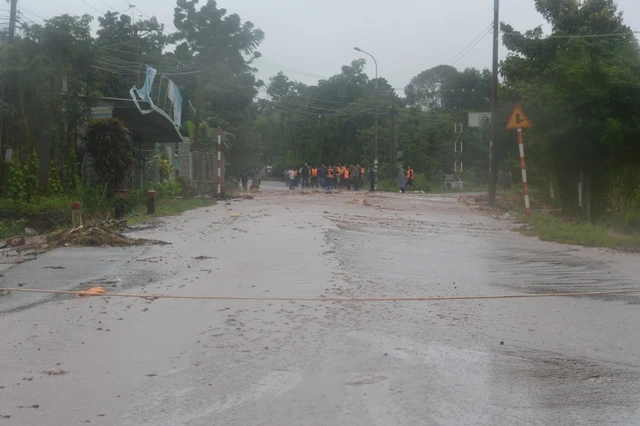 Đoạn đường chính đã hoàn toàn bị chia cắt. Cơ quan chức năng đã chăng dây chặn hai đầu và yêu cầu người dân di dời, cấm qua lại hai bên đầu trong phạm vi vài trăm mét đường. Hiện người dân muốn đi ra hướng huyện Châu Đức phải đi đường vòng. Có một cống xả được mở để giúp thoát nước. Tuy nhiên cống rất nhỏ nên lượng nước thoát không nhiều.