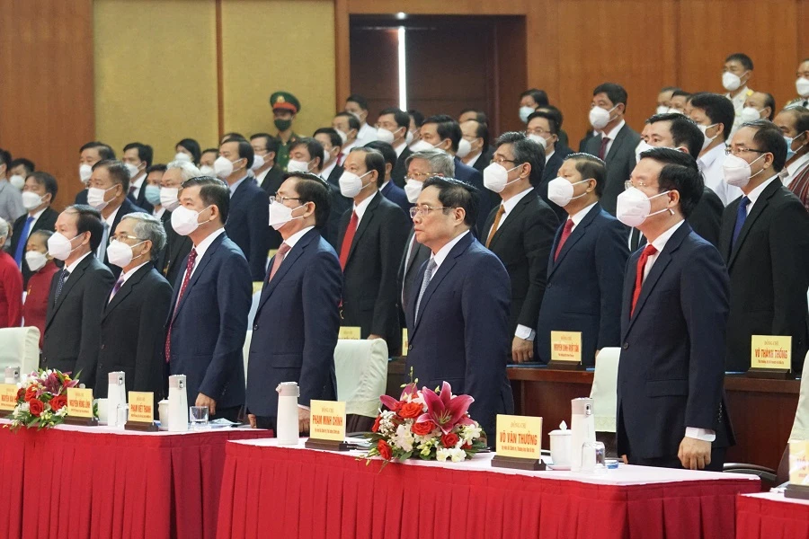 Thủ tướng Chính phủ Phạm Minh Chính, Thường trực Ban Bí thư Võ Văn Thưởng cùng các đại biểu dự Lễ Kỷ niệm. Ảnh: MT