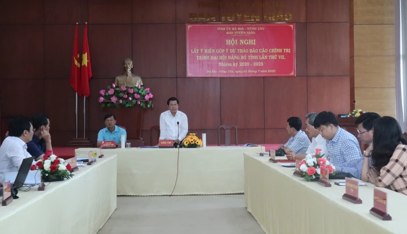 Ngày 21-7, Ban Tuyên giáo Tỉnh ủy tỉnh Bà Rịa- Vũng Tàu tổ chức hội nghị lấy ý kiến đóng góp của lãnh đạo, phóng viên các cơ quan thông tấn báo chí địa phương và thường trú trên địa bàn về dự thảo báo cáo chính trị trình Đại hội Đảng bộ tỉnh Bà Rịa- Vũng Tàu lần thứ VII, nhiệm kỳ 2020-2025.