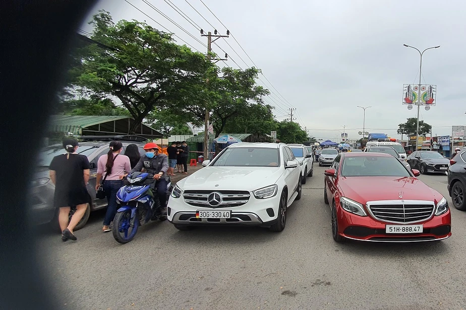 Lượng phương tiện đông tập trung tại chốt kiểm soát QL51 vào Bà Rịa - Vũng Tàu. Ảnh:TK