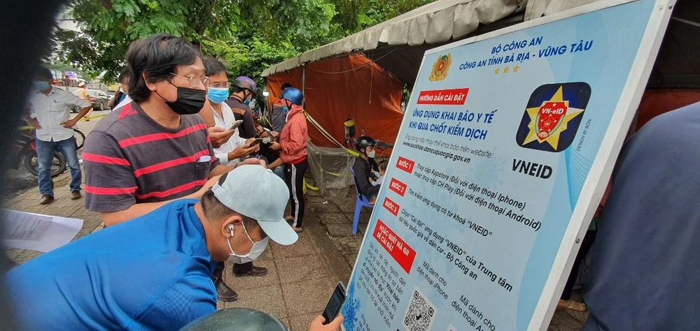 Nhiều người dân khi đến chốt vào tỉnh Bà Rịa- Vũng Tàu mới tìm hiểu,cài đặt phần mềm khai báo y tế-Ảnh:TK