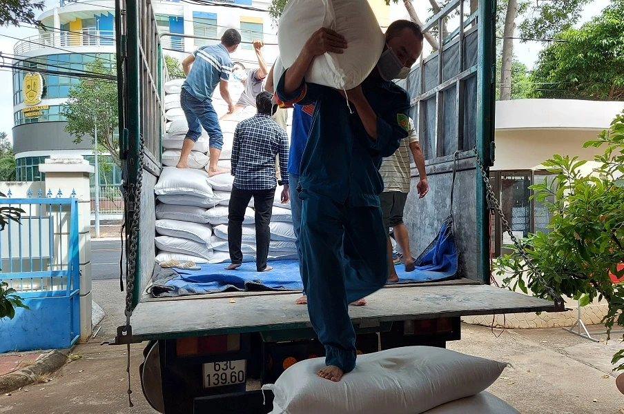 Mỗi huyện, thị, thành phố bố trí điểm tiếp nhận, giao gạo, chuẩn bị phương tiện vận chuyển đến các xã, phường, thị trấn để cấp phát kịp thời cho người dân.
