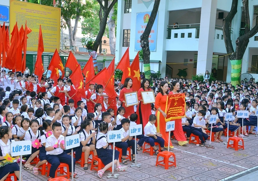 Do dịch COVID-19 diễn biến phức tạp, HS các cấp tỉnh BR-VT sẽ khai giảng trực tuyến thay vì tập trung như mọi năm. (Ảnh minh họa được chụp trước khi có dịch COVID-19 của Trường Tiểu học Hạ Long, Vũng Tàu)