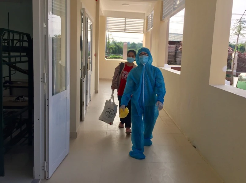 Người về từ vùng dịch đến cách ly tập trung tại trường tiểu học Trần Phú, xã Suối Rao, huyện Châu Đức chiều 2-6. Ảnh-ĐT