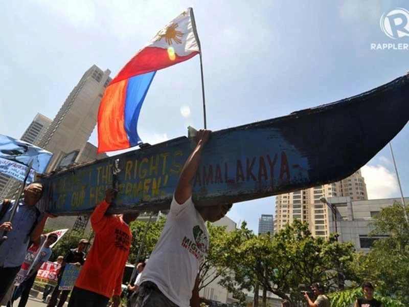 Người dân Philippines phản đối hành xử của Trung Quốc ở biển Đông năm 2016. Ảnh: RAPPLER