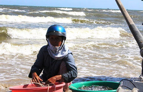 Để kiếm thêm tiền nuôi con ăn học, chị Sa còn mua lại cá, tôm của những người kéo lưới khác bán lại cho những người đi tắm biển buổi chiều. “Dù chỉ được vài ba chục ngàn tiền lời nhưng tôi cảm thấy vui. Tôi cố làm mua cho thằng con chiếc xe. Đã đến lúc nó cũng cần có cái xe đi lại rồi” - chị Sa chia sẻ.