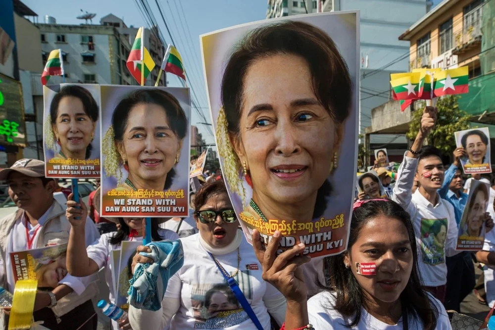 Cố vấn Nhà nước, Chủ tịch đảng liên đoàn Quốc gia vì Dân chủ (NLD) Aung San Suu Kyi và hàng trăm quan chức Myanmar khác đang bị quản thúc tại gia, dưới sự canh gác của binh sĩ.