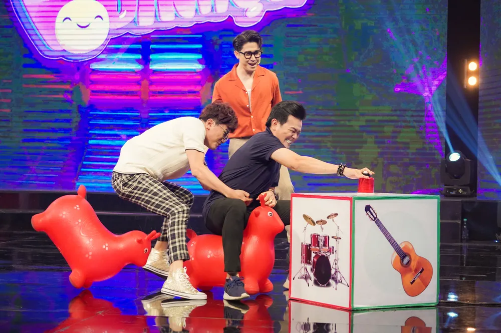 Cụ thể, luật chơi phải quay vòi voi năm vòng, sau đó cưỡi thú nhún đến vạch đích bấm chuông giành quyền trả lời câu hỏi. Thế nhưng Bích Trâm chỉ quay hai vòng rồi đếm thành năm khiến MC Quốc Bảo cười ngả ngửa. Không chịu nhượng bộ trước sự lách luật trắng trợn của đội đối thủ, ca sĩ Việt Quang bế hẳn thú nhún lên và chạy.
