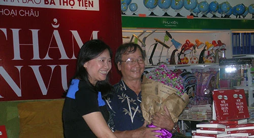 Đại diện Nhà sách Phương Nam tặng hoa nhà báo Ba Thợ Tiện