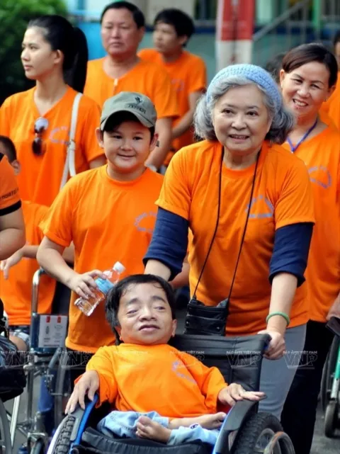 Bà Trần Tố Nga trong một lần đi bộ đồng hành cùng các nạn nhân chất độc da cam tại TP.HCM. Ảnh: P.V