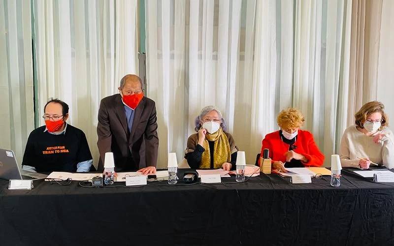 Bà Trần Tố Nga (giữa) tại buổi họp báo ở Paris trước khi diễn ra phiên tòa tại Pháp vào hôm nay (25-1). Ảnh: P.V