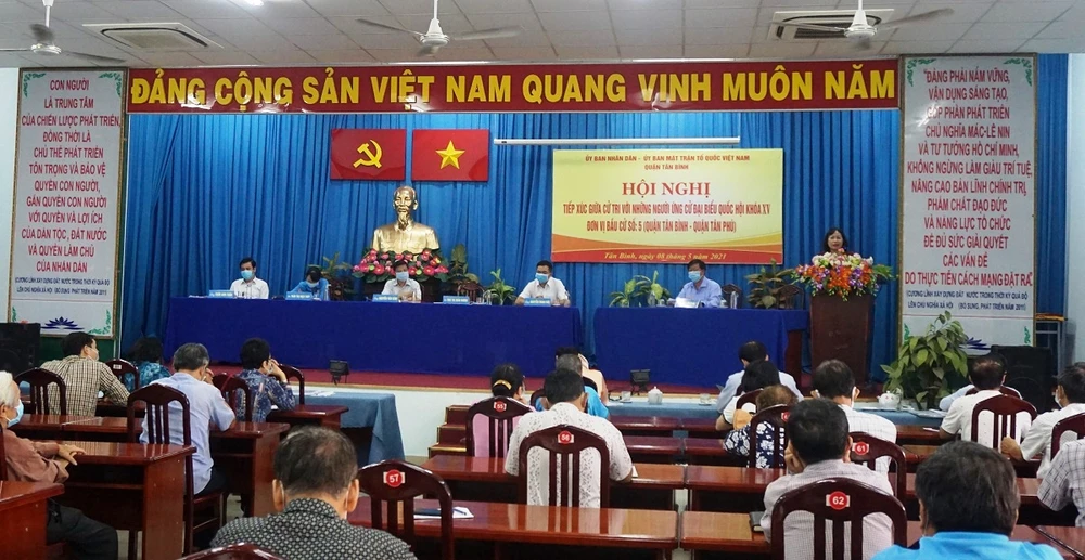 Ngày 8-5, các ứng cử viên đại biểu Quốc hội khoá XV, đơn vị 5 đã có buổi tiếp xúc cử tri quận Tân Bình, TP.HCM để vận động bầu cử.