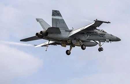 Máy bay tiêm kích F/A-18 của Mỹ cất cánh từ tàu sân bay USS George Washington trên biển Đông. Ảnh: REUTERS