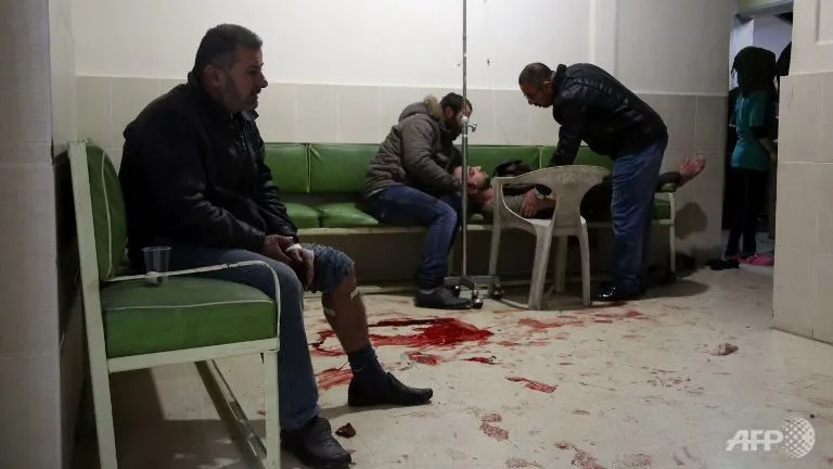 Một phần hiện trường ba vụ đánh bom nhà hàng ở Syria hôm 30-12. Ảnh AFP