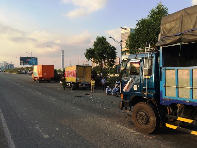 Ba xe tải đã va chạm liên hoàn khi chuẩn bị qua cầu Tham Lương, quận Tân Bình
