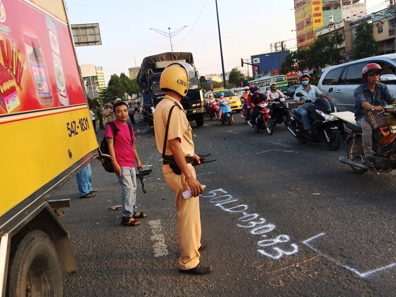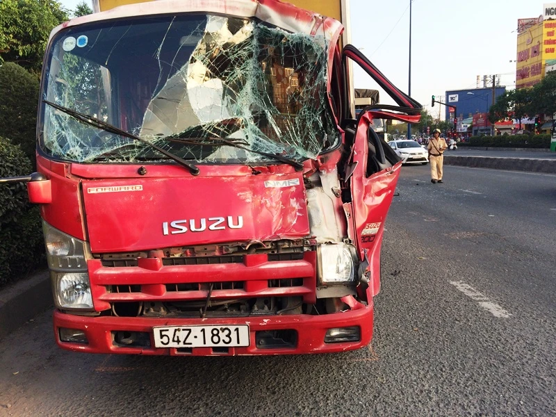 (PLO)- Chiều 9-1, tài xế Lê Văn Phong (P.12, Q.12, TP.HCM) điều khiển xe tải chở thực phẩm chay BKS: 54Z-1831 lưu thông trên đường Trường Chinh theo hướng Cộng Hòa - ngã tư An Sương. Khi chuẩn bị qua cầu Tham Lương (P.15, Q.Tân Bình, TP.HCM) thì phát hiện xe tải BKS: 50LD-030.83 do một tài xế tên Tuấn chạy phía trước dừng đột ngột nên giảm tốc độ đồng thời bẻ lái sang phải để tránh nhưng không kịp nên tông phải đuôi.