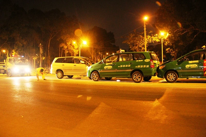 Tại hiện trường, chiếc xe Innova nằm bên phần đường ngược chiều, bị móp nặng phần đầu; hai xe taxi cũng bị hư hỏng nặng phần đầu và đuôi xe; cả ba phương tiện dính chặt vào nhau, nhiều mảnh vỡ và dầu nhớt văng tung tóe. Những hành khách trên xe taxi gặp một phen hoảng loạn.