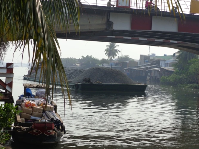 Các loại sà lan lớn trên 1.500 tấn vẫn qua lại dưới cầu Nhị Thiên Đường cũ và mới an toàn.
