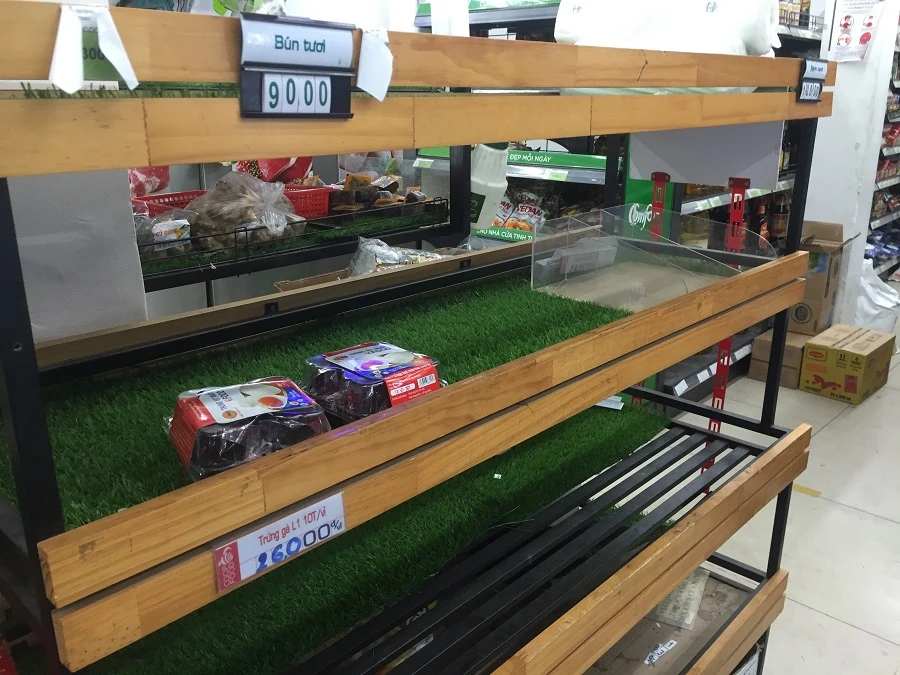 Trứng gia cầm được bán sạch sẽ trên kệ hàng cửa hàng tiện lợi. Ảnh: TÚ UYÊN