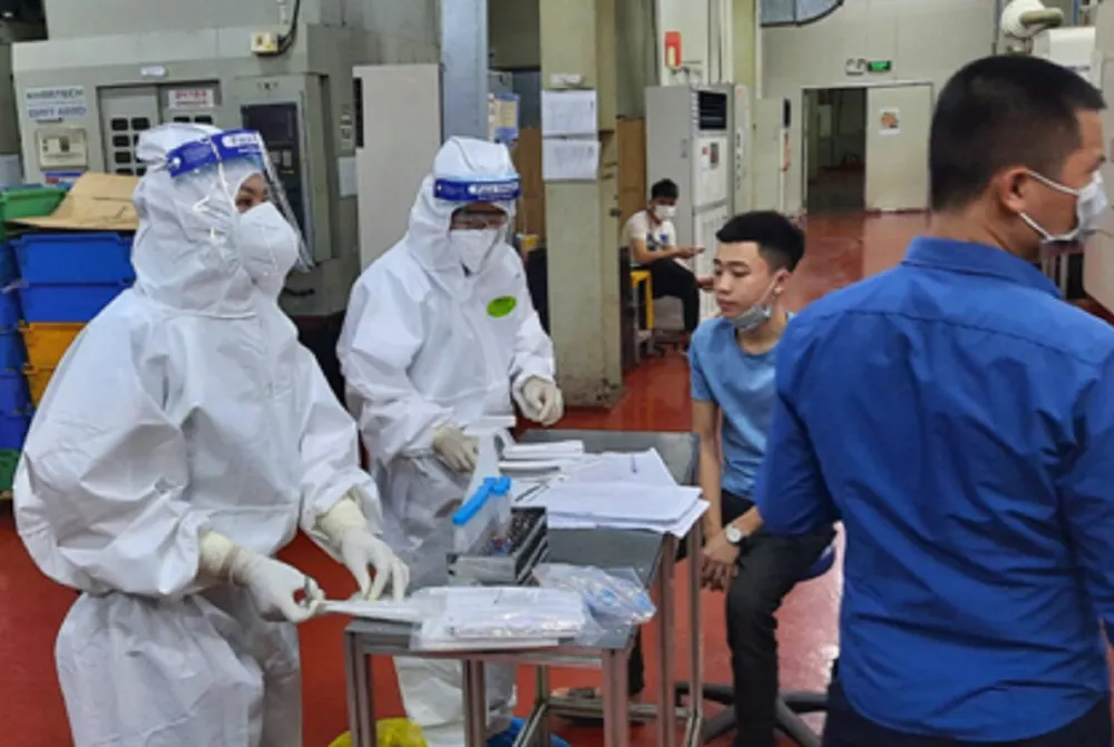 Thực hiện lấy mẫu xét nghiệm cho công nhân làm ca đêm công ty TNHH SHIGYOUNG Việt Nam - KCN Vân Trung. Ảnh: https://vietyen.bacgiang.gov.vn/