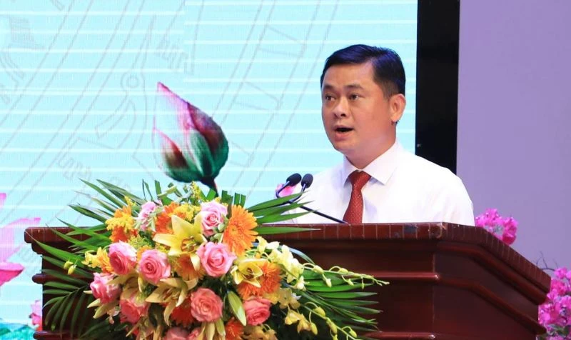 Ông Thái Thanh Quý, Bí thư Tỉnh ủy Nghệ An, đọc diễn văn lễ kỷ niệm. Ảnh: NTV